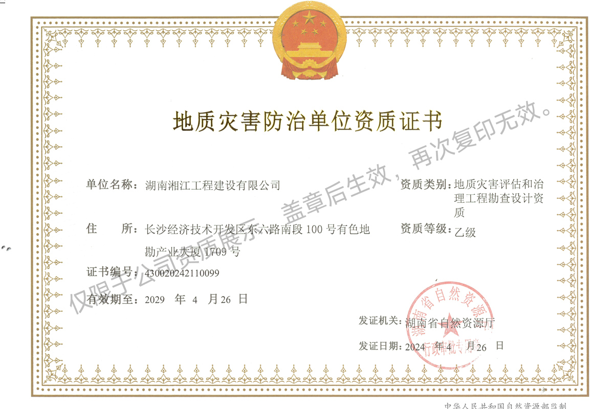 地質(zhì)災(zāi)害防治單位資質(zhì)證書(shū)