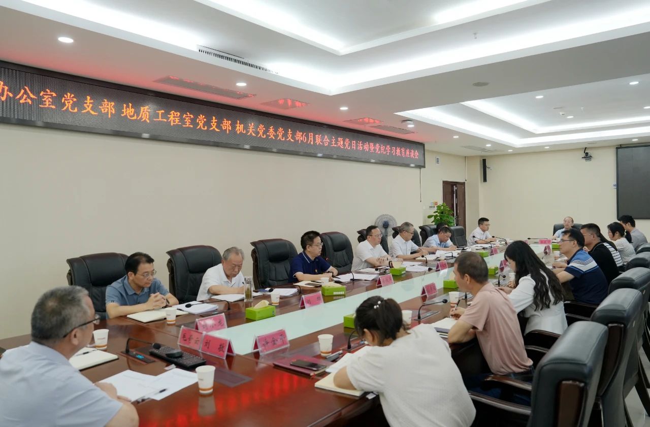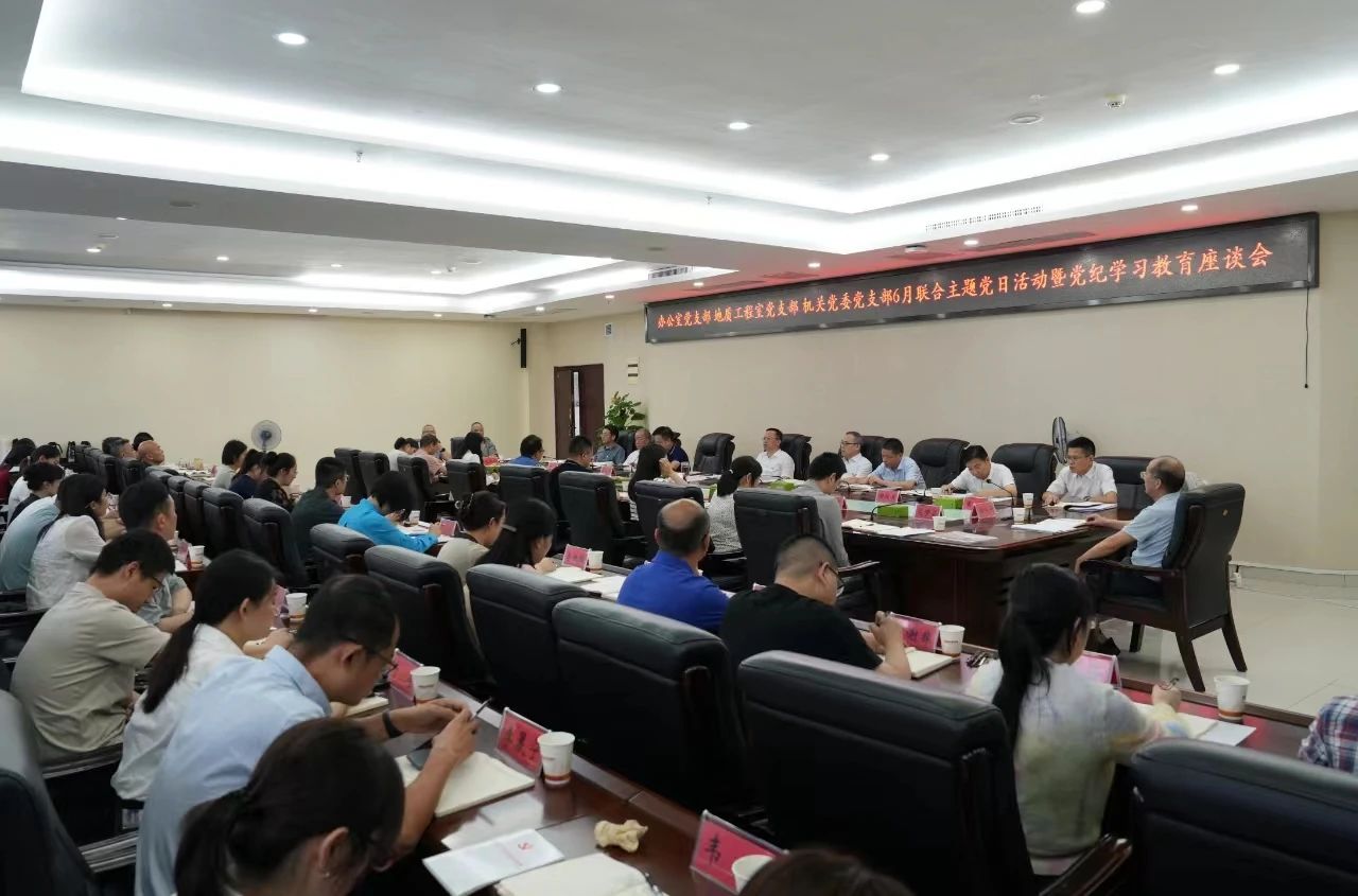 6月26日上午,省地質(zhì)院黨委書記談文勝參加院辦公室、地質(zhì)工程室、機(jī)關(guān)黨委三個(gè)黨支部聯(lián)合開展的主題黨日活動(dòng)暨黨紀(jì)學(xué)習(xí)教育座談會(huì),與支部黨員同志一起交流學(xué)習(xí)體會(huì),更好推動(dòng)黨紀(jì)學(xué)習(xí)教育入腦入心、走深走實(shí)。院黨委委員、總工程師曹幼元,黨委委員、副院長(zhǎng)全鐵軍以普通黨員身份參加會(huì)議并作交流發(fā)言。